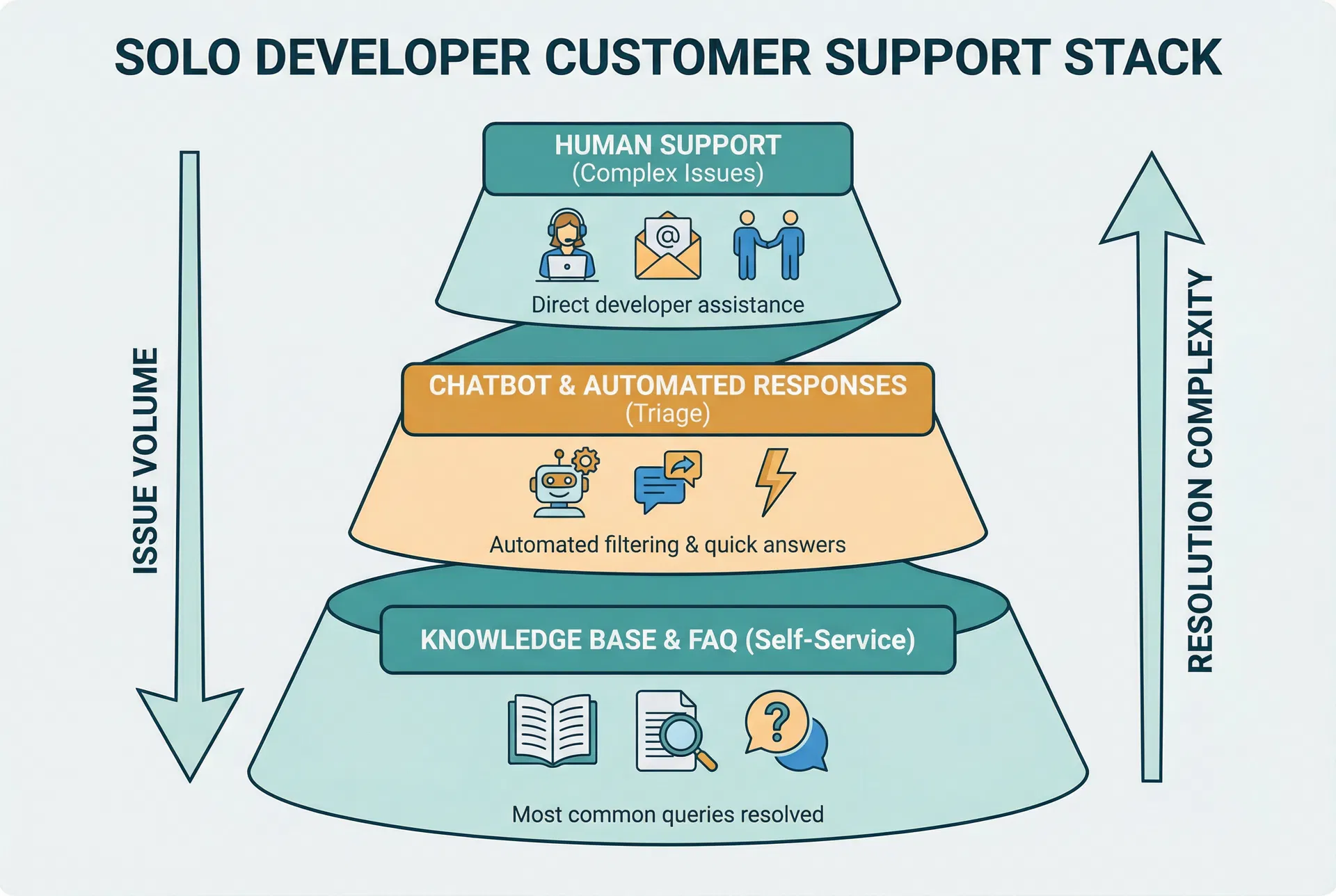 前述したサポート破綻のパターンを回避する鍵は、ユーザー自身が問題を解決できる「セルフサービス」の仕組みを徹底的に構築することです。問い合わせせずともユーザーが自己解決できる環境を整えることで、サポート全体の負荷を劇的に削減し、開発者はより重要な業務に集中できます。