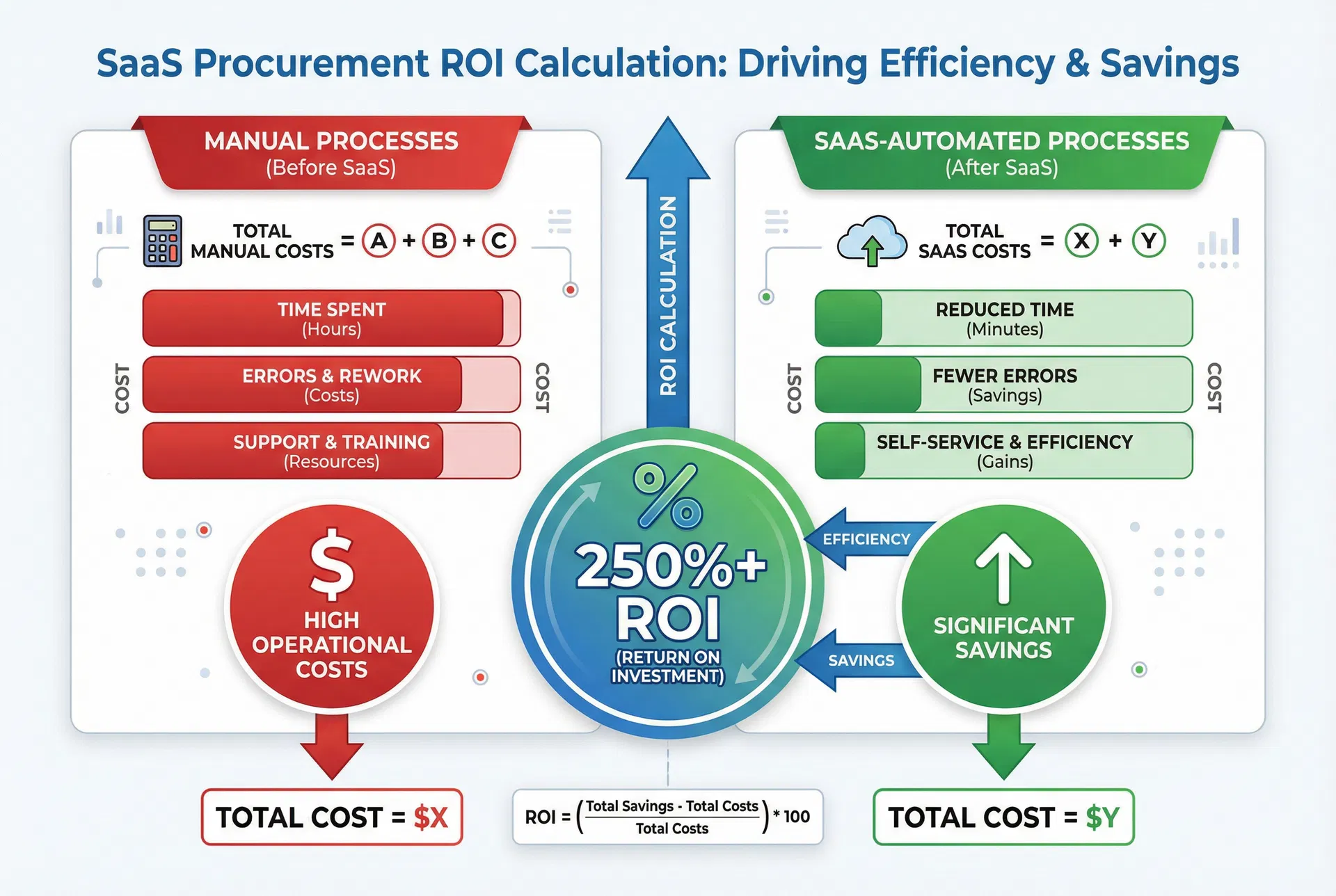 SaaS導入の稟議において、費用対効果(ROI)を定量的に示すことは、承認を得るための最も強力な武器です。ここでは、ROIを算出する具体的なステップを解説します。